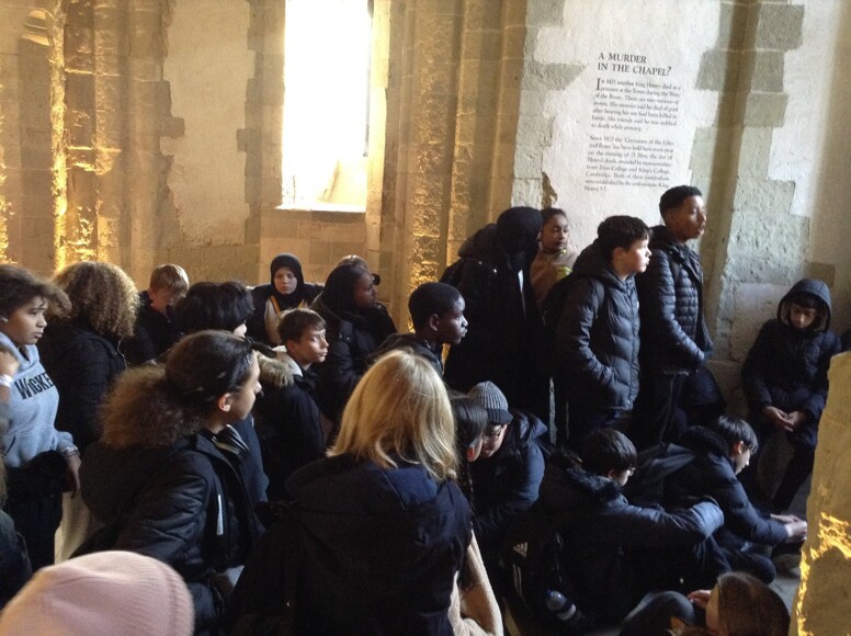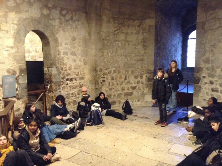 We started our tour of the Tower of London with a visit to the Crown Jewels and it was interesting to see a space where St Edward’s Crown is normally on display. A note advised that the crown had been taken to get it ready for the coronation next May. We looked around the medieval apartments and the Bloody Tower before meeting a costumed guide for a talk entitled ‘What makes a martyr?’ Year 8 pupils have been learning about religious changes in history lessons.